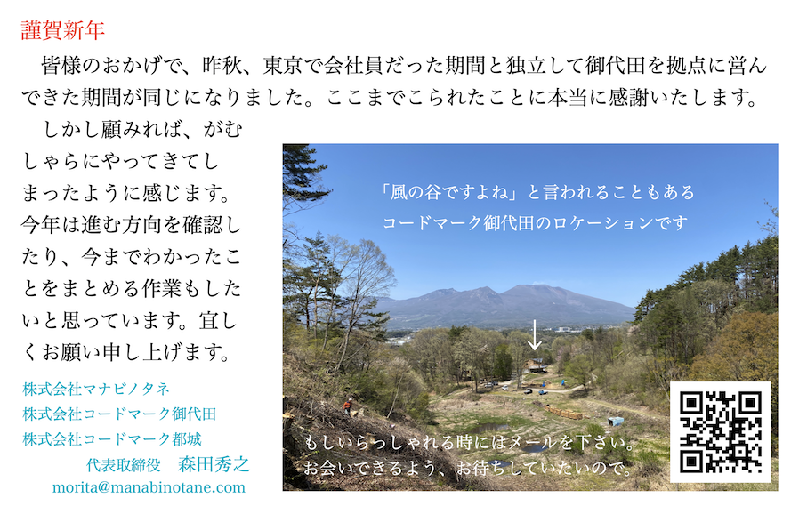 『コードマーク』という新たな考え方、仕組みにより、2020年、株式会社コードマーク御代田を設立しましたが、昨年その活動拠点ができました。今年は地域住民自治のためのより実践的な活動を試していきたいと思います。